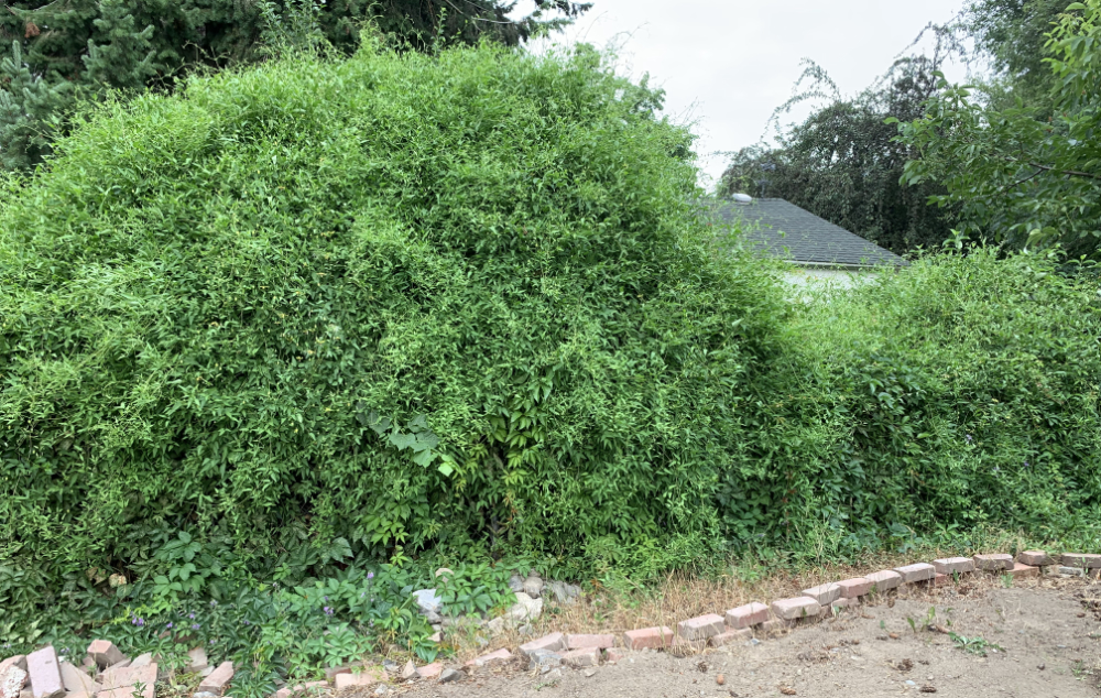 In that effort, we have some help from our neighbors, who have some vining plants that take over half of the fence. There’s some Virginia Creeper, and…
