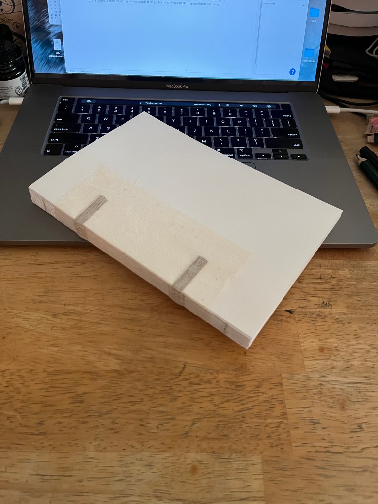 I can make my own book cloth and sew text block with reasonable competency. I’m still not great with glue, but I like the stability it (along with mull) provides. I can improvise headbands when I need to. I have spent *a lot* of money at places like Talas and Hollander’s — they’re both amazing, have exactly what I’m looking for (usually), and I have been nothing but pleased with my shopping experiences.