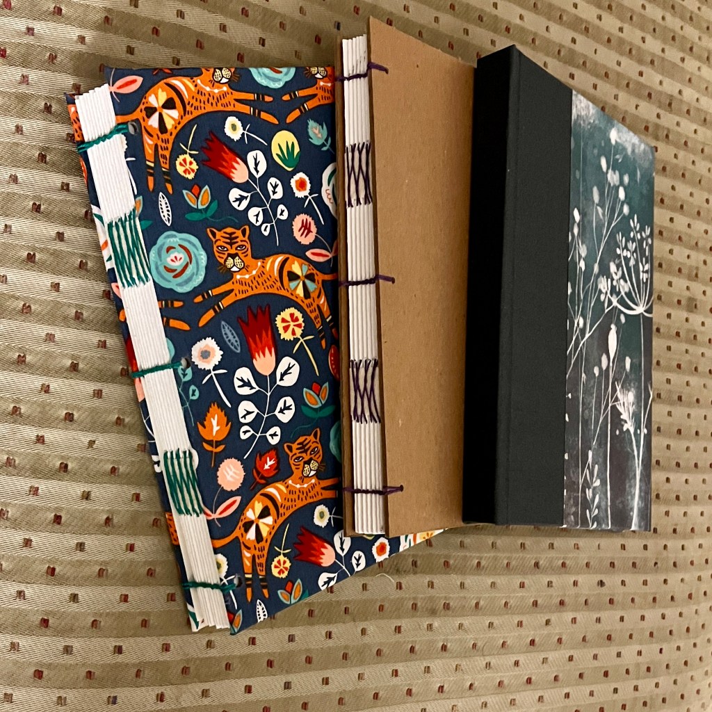 These turned out OK — they’re still practice books (not fit for gifting or sale), but each one demonstrates some improvement, and they will be useful to me. I still have one more text block to case bind (it has been sewn, but needs to be glued, and I need to make a case for it.