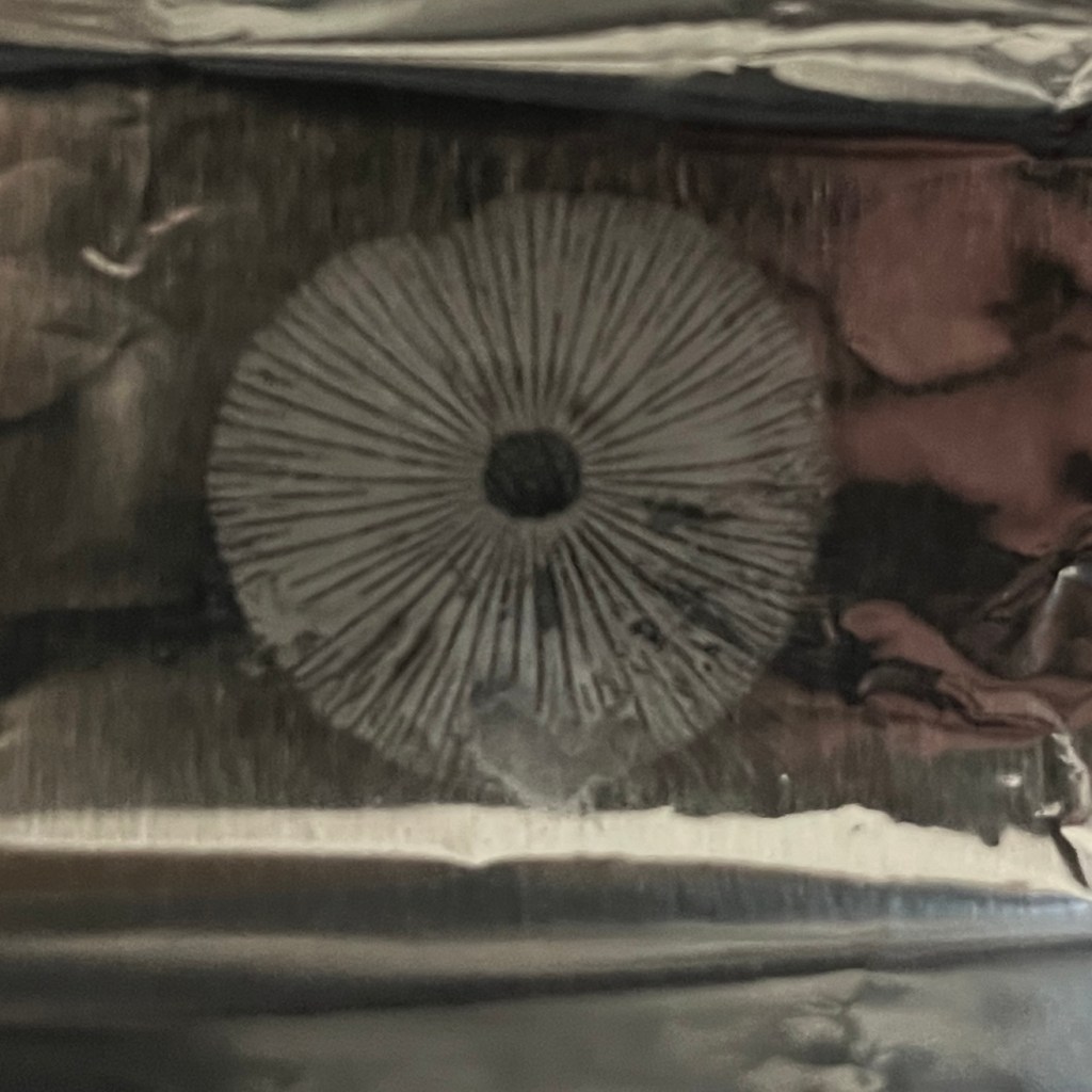 This mushroom was foraged from a neighbor’s well hydrated hell strip. The substrate: grass and the soil that supports it. (I bet we had these when we had a fairy circle in our front yard many years ago.) I made the spore print on aluminum foil in case it turned out white (good call on my part), and was excited that I actually got something… this was my third attempt (with different mushrooms).