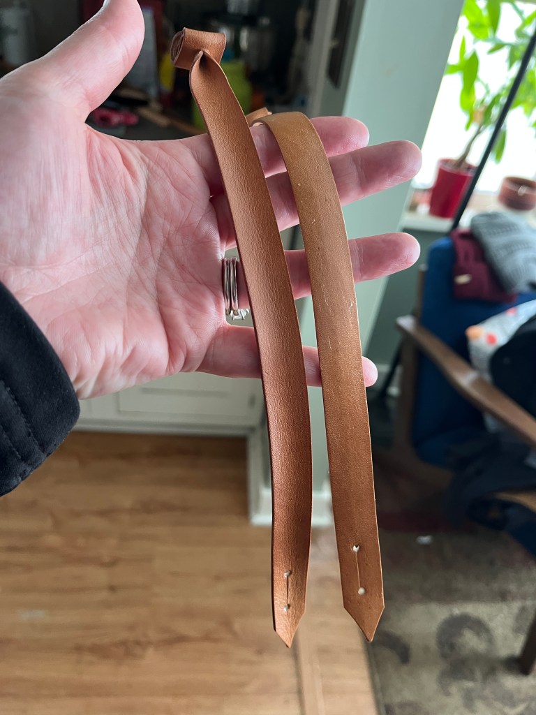 Stan broke one of his jesses this morning (they’re leather, so they eventually get brittle, and he’s been wearing his current pair for more than a year), so I made these this afternoon and will install them tomorrow.