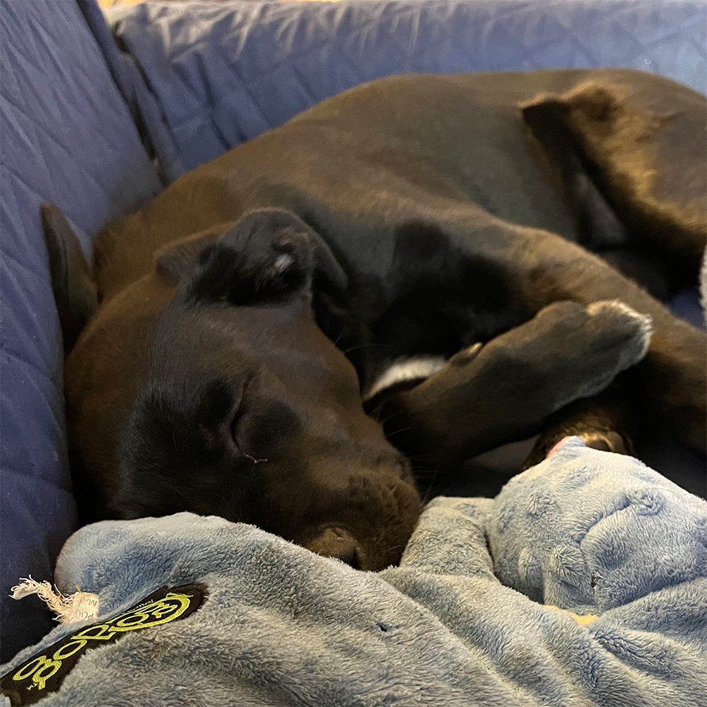 We’ve been assured that this is perfectly normal pre-adolescent puppy stuff, that it will pass, and that she’s developing as she should be. She’s sleeping through the night (from 11p to 6:30a). Her appetite is settling; she has decided that she doesn’t need a separate lunch, in part, I think, because we do 5 – 10 minutes (closer to five minutes, until she gets bored) of lunchtime training with superfun treats.