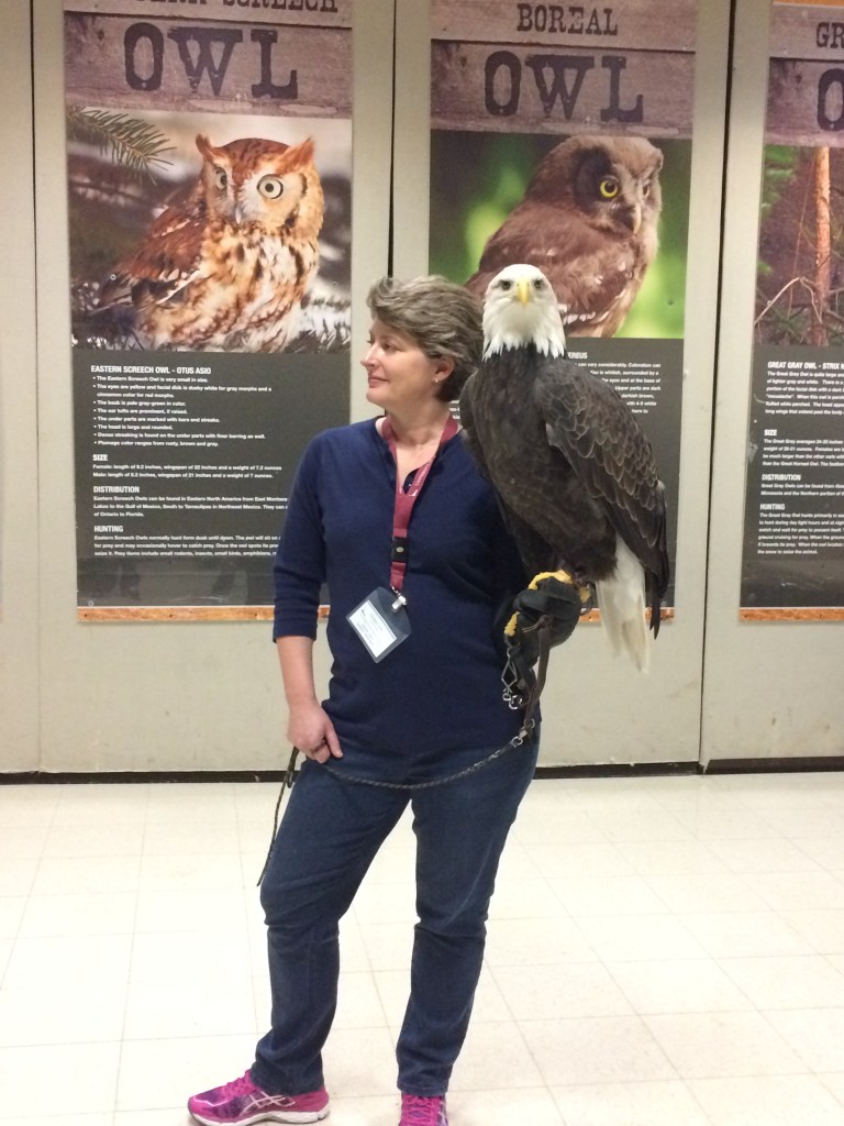 I’ve only ever worked with one bald eagle, and only for a few minutes, and it was at The Raptor Center. It was Maxime.