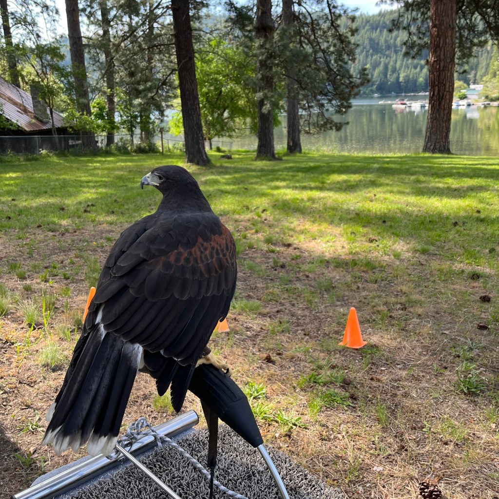 Stan (the Harris’s Hawk) waiting for the kids to show up.