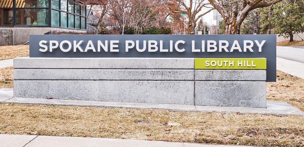 [This is a branch library that serves one of Spokane’s older, fairly wealthy, neighborhoods. Spokane had a Carnegie library (that now houses an architecture firm), and the original Spokane City Library was on the land now occupied by the Central Library. The South Hill branch is one of five neighborhood branches. Spokane Public Library also supports two book kiosks, and a maker space.]