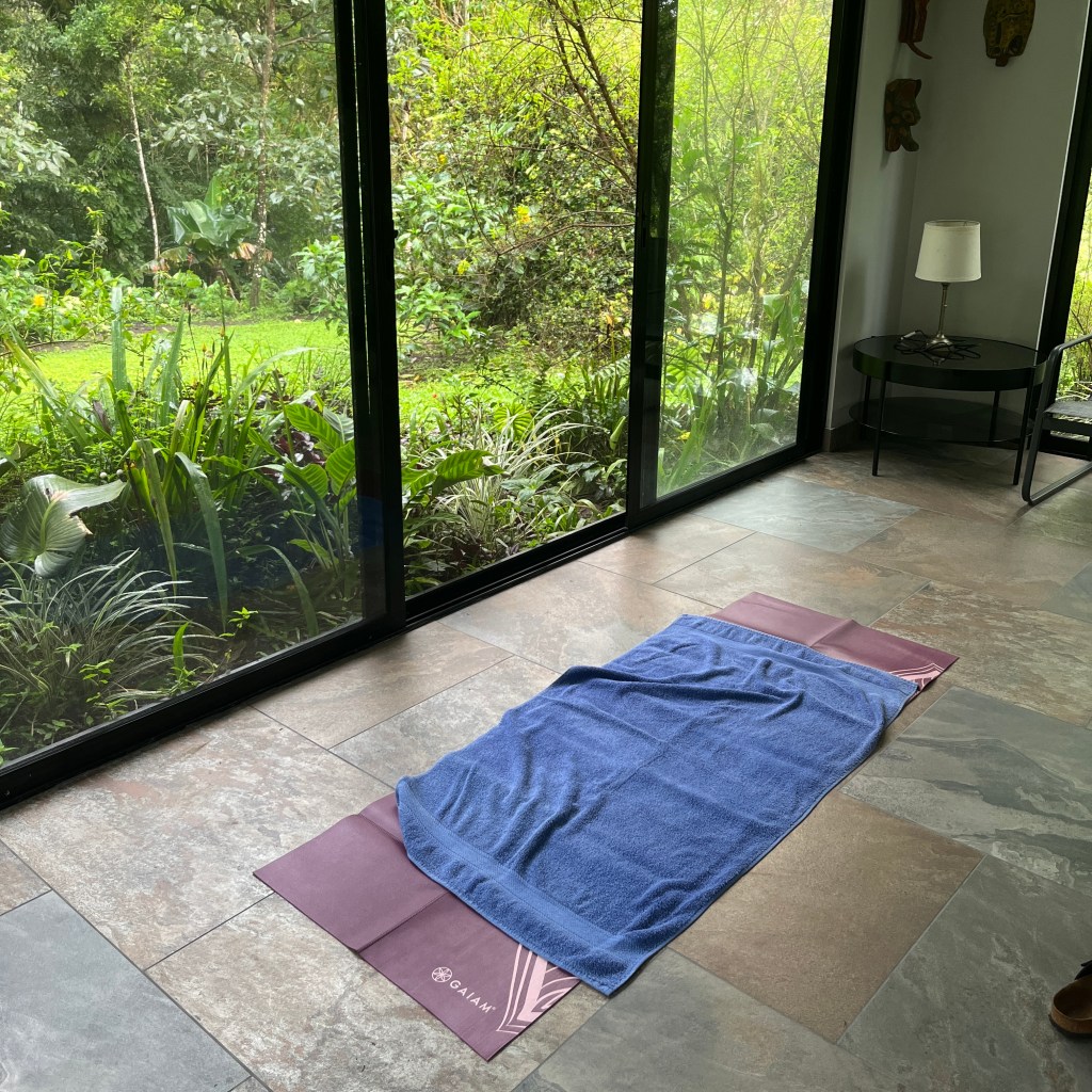 Fabulous-and-talented husband’s mother owns a house in Costa Rica, near Lake Arenal, and she invited us to stay with her for the week. We flew into Liberia and rented a car to get around. My MIL’s house is somewhat secluded, but not remote. It’s a lovely, comfortable house, with lots of windows. One of my favorite things about it was the covered patio, where I could do yoga in the mornings; it was warm and sheltered from the rain. So perfect.