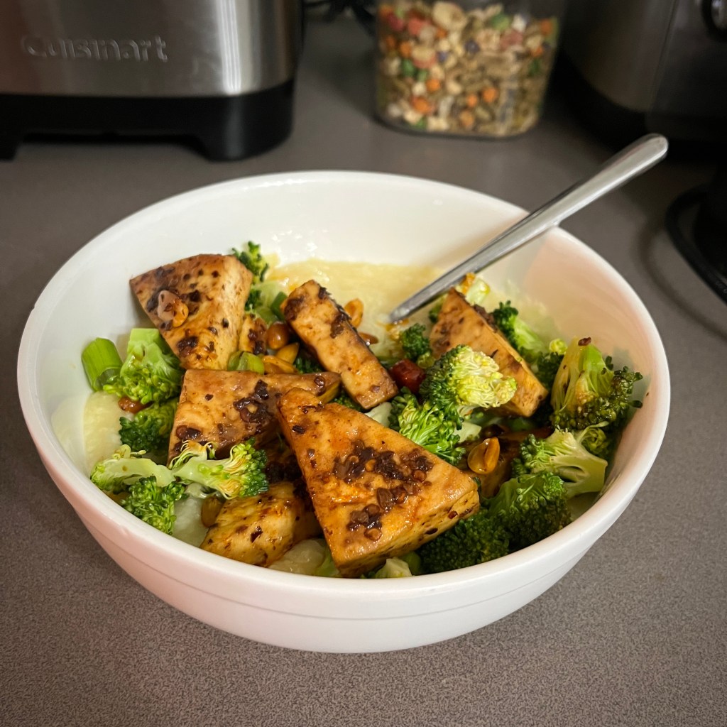 A couple of weeks ago, I made congee and tofu with peanuts and chili oil. I did not mix my rices, so I didn’t follow the recipe exactly, but it was still delicious… so delicious that I had leftovers for breakfast the next day.